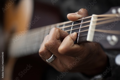 The guitarist demonstrates the D Major chord