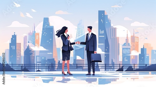 The Handshake of Business Leaders Sealing a Successful Partnership in the Bustling Urban Cityscape