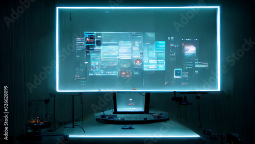 The Hi-Tech illuminated transparent Computer Monitor on the desk - Digital Art