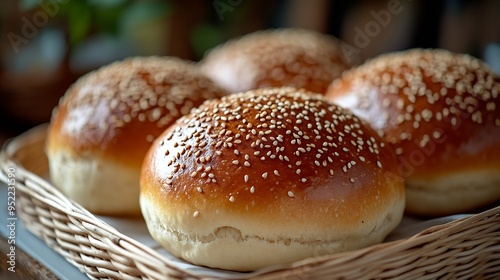 The homemade sourdough sesambrtchen bread buns with sesame seeds Artisan bakery : Generative AI