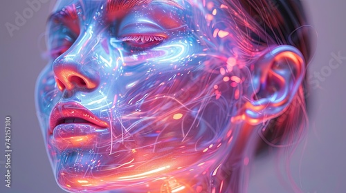 the human head is shown in an animated fashion, in the style of fluid color combinations, neon realism. Generative AI.