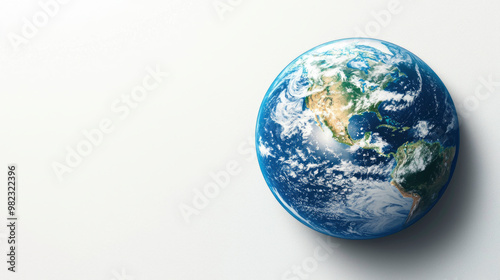 The illustration displays planet Earth with visible continents and oceans, emphasizing its beauty and geographical details against a stark white backdrop. banner with copy space.