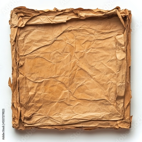 The image depicts a brown paper piece with a see-through background, bearing resemblance to a frame, its edges rough and curled in a manner suggestive of age