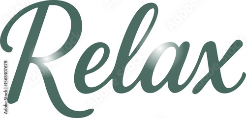 The image displays the word “Relax” in an elegant, flowing cursive font with a calm green color on a transparent background.