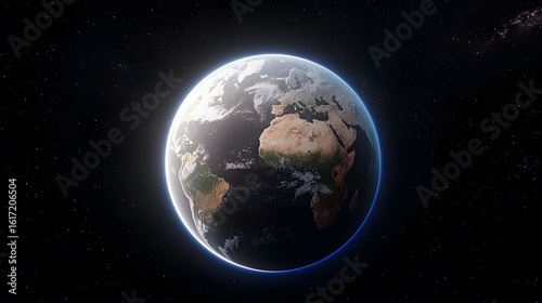 The image features a detailed view of Earth against a backdrop of stars, showcasing its continents, oceans, and a glowing atmospheric effect.
