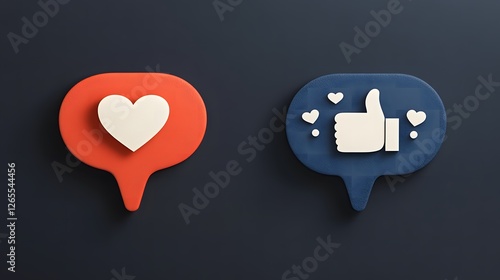 The image features two speech bubble icons on th d41079eb-5250-43d9-97cf-3e20f67201e1 0 two thumbs up and a heart on a dark background for communication and connection