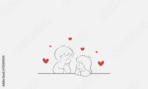 The image is monochromatic drawing indicating a romantic or loving atmosphere, with many heart floating, Vector illustration in paper art style.
