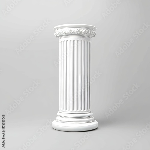 The image of an empty podium is conveyed through a white antic column on a grey background