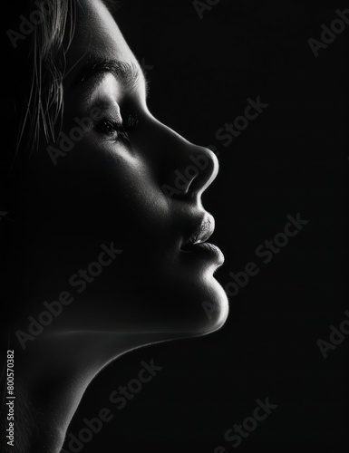 The image showcases a face emerging from the darkness, emphasizing the sharp contrast and complex interplay of light and shadow across the human features
