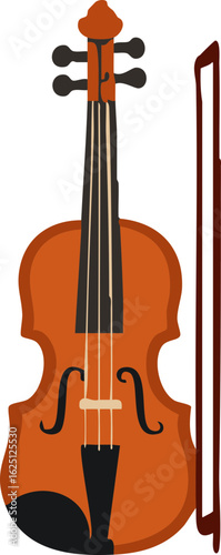 The image shows a flat vector illustration of a brown violin with its bow, depicted in a simple and stylized design.