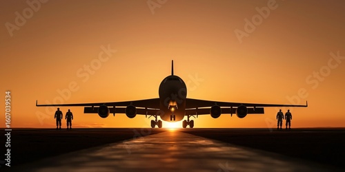 The imposing silhouette of a military transport aircraft on an isolated runway at dusk, its powerful engines ready for deployment.