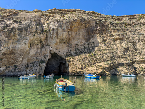 The Inland Sea and tourist boat. Dwejra is a lagoon of seawater on the island of Gozo.