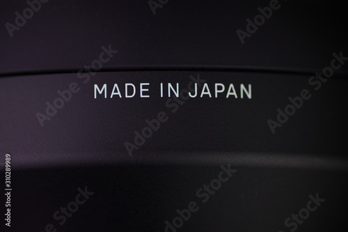The inscription made in japan on a black object isolated