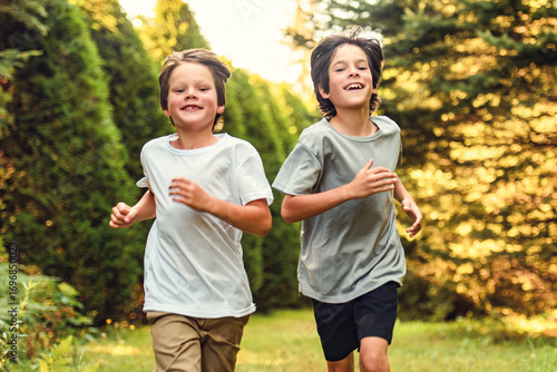 The kids running Outdoor activities by running make the child's body healthy