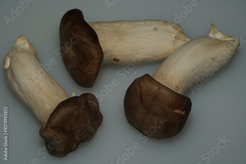 The king oyster mushroom (Pleurotus eryngii), also known as the king trumpet mushroom, is a popular edible mushroom known for its meaty texture and mild, earthy flavor. It has a long