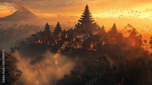 The largest and holiest temple in Bali, Indonesia, at sunset is Pura Besakih, which is situated on the slopes of Mount Agung.