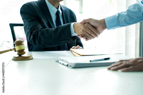 The lawyer stood and handshake with client