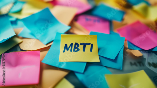 the letters "MBTI" is wrote on a sticker paper on the desk
