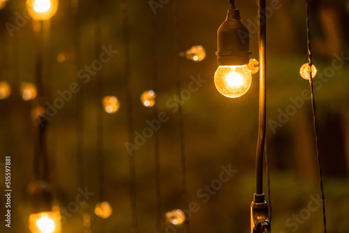 The light bulb ball hanging on electric wire