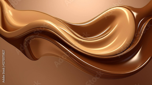 The liquid chocolate forming a smooth, glossy wave against a dark background, with a sense of movement and fluidity.