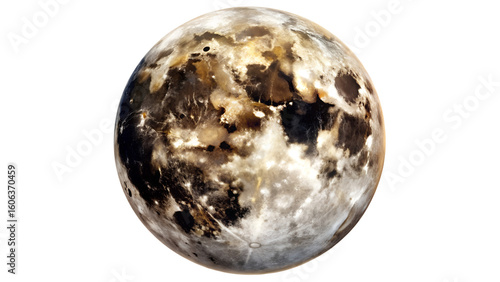 The luminous surface of the moon, with its distinct craters and textures, shines brightly in the darkness isolated on transparent background