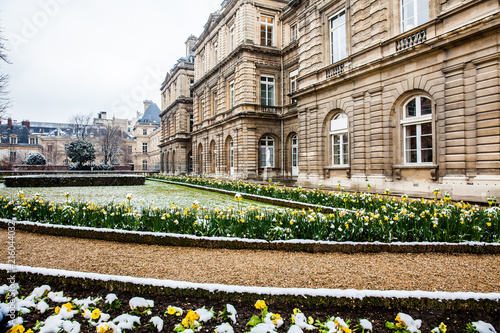 The Luxembourg Palace garden in a freezing winter day just before spring