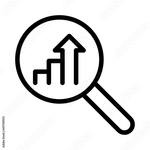 The magnifying glass is observing the business growth graph. Magnifying glass icon, Growth icon