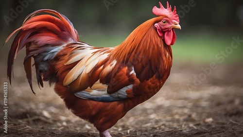 The Majestic Crimson-Feathered Rooster: A Captivating Portrait from the Farm. Beautiful red rooster on the farm. rooster portrait.