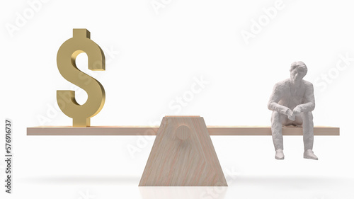 The man and scales gold dollar symbol for business or money concept 3d rendering