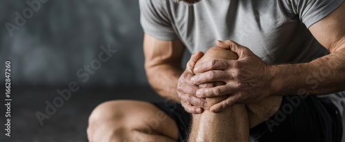 The man cradling his knee in pain during a fitness session.