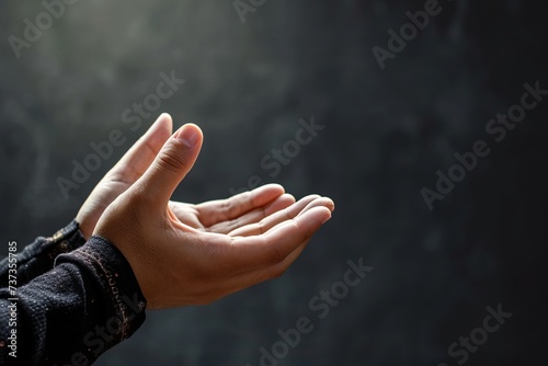 The man's palms look up in prayer, Eastern traditions. Concept of islamic religion Ramadan Eid al-Adha, Eid al-fit