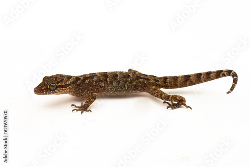 The marbled bow-fingered gecko or Javan bent-toed gecko lizard cyrtodactylus marmoratus isolated on white background