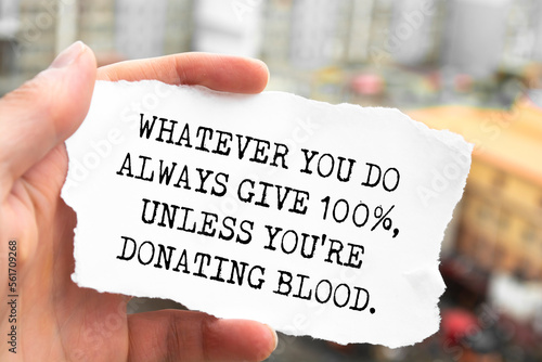 The motivational quote 'Whatever you do always give 100%, unless you're donating blood'.