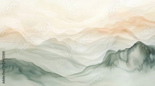 The mountains are covered in a light mist, giving the scene a serene