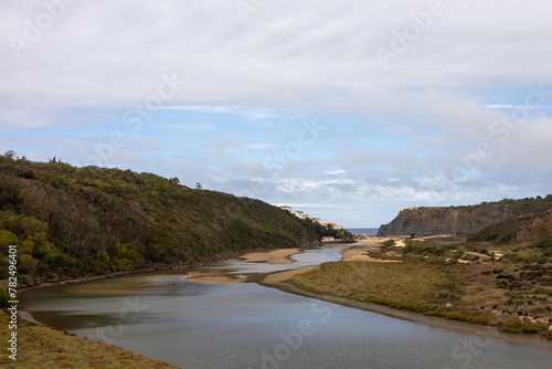 The mouth of the Ribeira de Seixe River into the Atlantic Ocean