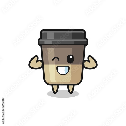 the muscular coffee cup character is posing showing his muscles