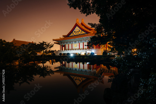 The National Concert Hall and a pond at night, at Taiwan Democra