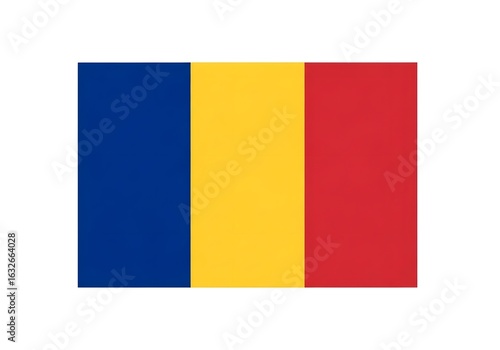The national flag of romania, a tricolor consisting of three equal vertical bands of blue, yellow, and red, isolated on white background