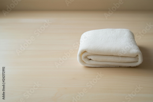 The Neat Arrangement of a Soft Rolled Towel on a Wooden Surface.