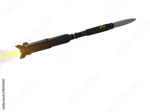 The newest Russian ballistic missile with a nuclear warhead is flying. Putin's presentation of the latest developments in Russian military equipment. 3D rendering