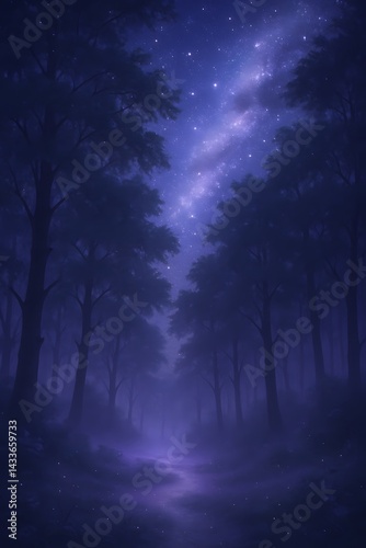 the night sky and the forest.Generative AI