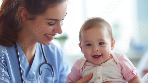 The nurse provides attentive and tender care for infants, ensuring their well-being with heartfelt compassion, warmth and gentleness in a nurturing healthcare environment.