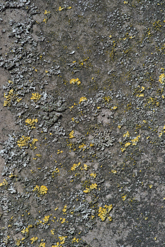 the old concrete wall covered with lichen