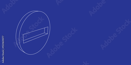 The outline of a large no entry road sign made of white lines on the left. 3D view of the object in perspective. Vector illustration on indigo background