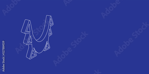 The outline of a large yoga hammock symbol made of white lines on the left. 3D view of the object in perspective. Vector illustration on indigo background