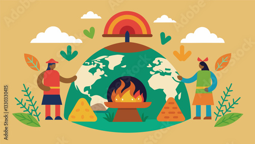 The Pachamanca Earth Oven a symbol of the connection between humans and the earth as centuries of tradition and culture are passed down through each delicious meal.. Vector illustration