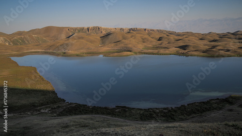 The panorama of the Tulpar Lake in Kyrgyzstan