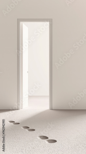 The Path to New Beginnings: A Door Ajar, Footprints Leading Through, Hope Beckons.