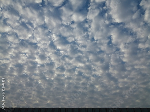 The pattern of white clouds in the sky as a white background like cotton balls in the morning