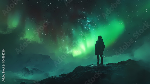 The phenomenon of the northern lights and their magical display in the sky. Aurora. Illustration